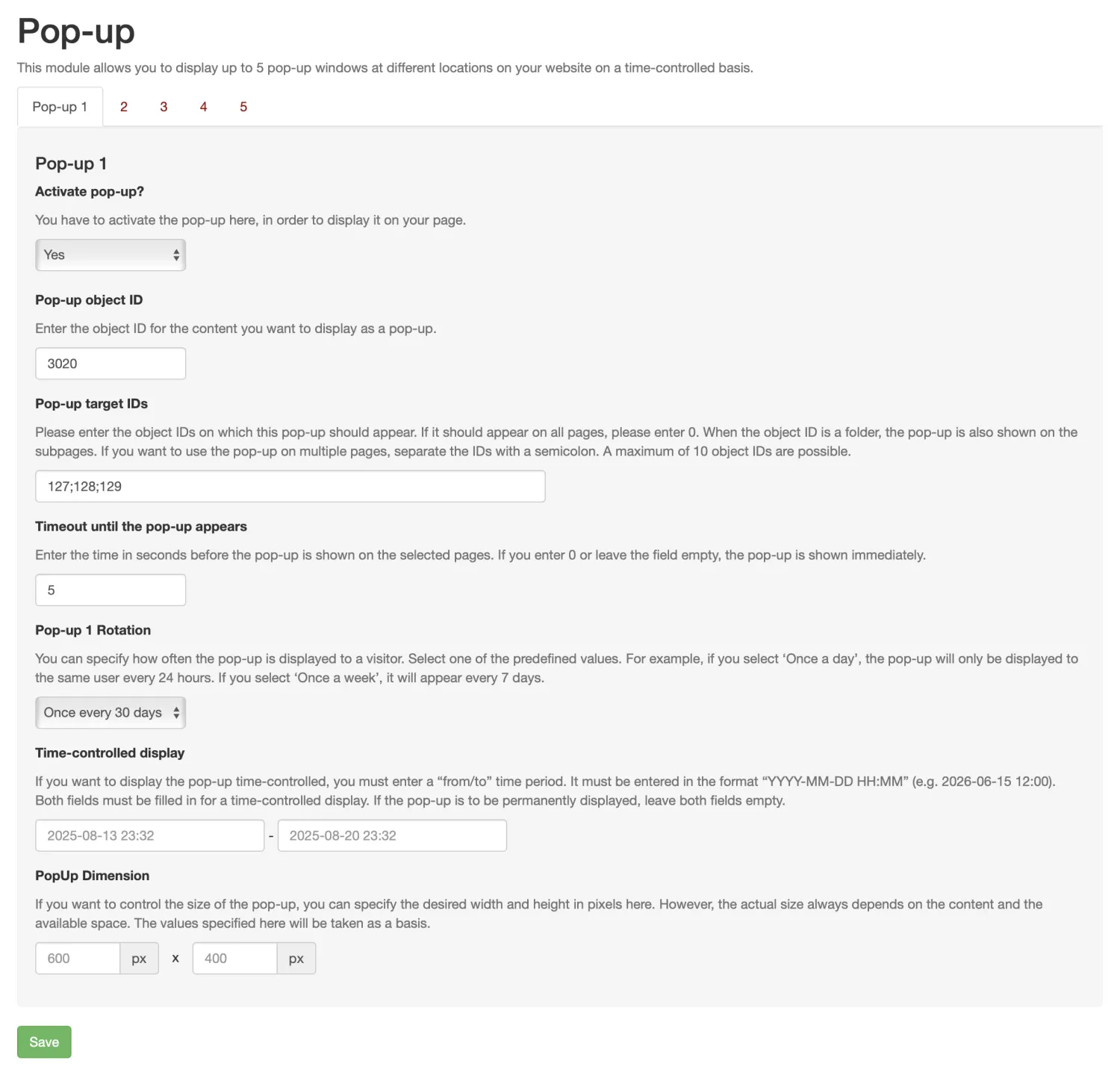 If "duplicate content = Yes" and an ID has been entered: